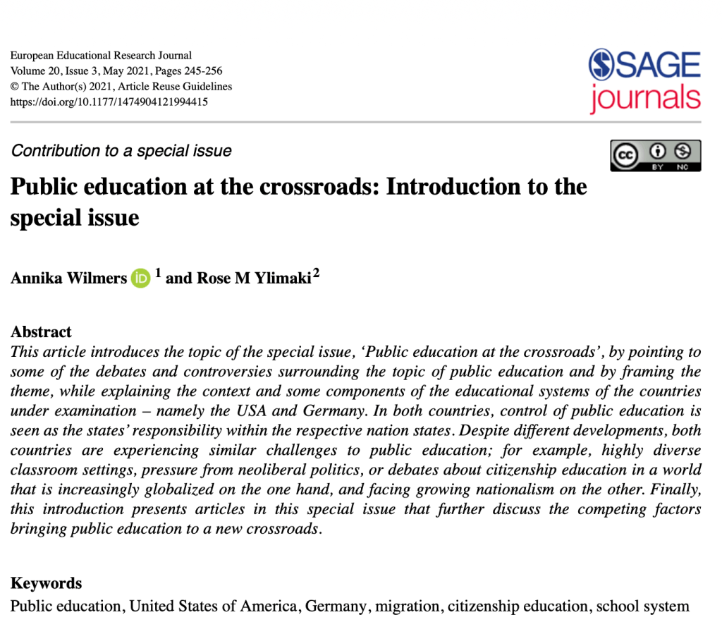 A special issue through the European Education Research Journal. Read the collaborative issue here. Findings will be presented at the UN Session at German House in 2022.